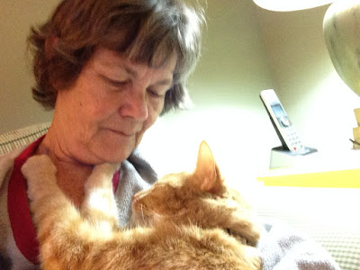 Pet winner sent in by Colleen Endres pictured with cat, Bob. “Ever since I brought him home from the shelter, he has shown his love by touching my neck. This is his favorite way to sleep.”
