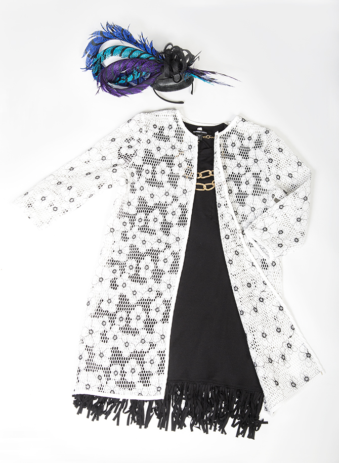 | Hat by The Hat Girls, $250 ; Jacket available at Boutique Serendipity, $168; Dress available at Modern Elegance, $135; Necklace available at Liv Boutique, $48. Photo by Melissa Donald |