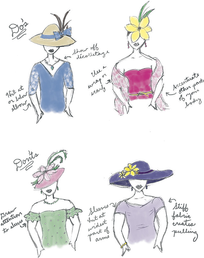 Derby time is the best time to strut your stuff in a new dress — ideally, one that shows off your best assets and downplays any areas you’re not so confident about. One common ‘trouble zone’ among women is upper arms. Here are a few ideas to keep in mind while shopping if you struggle with dressing your upper body with confidence.