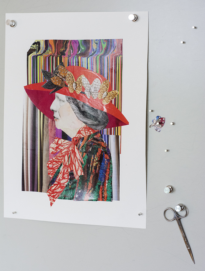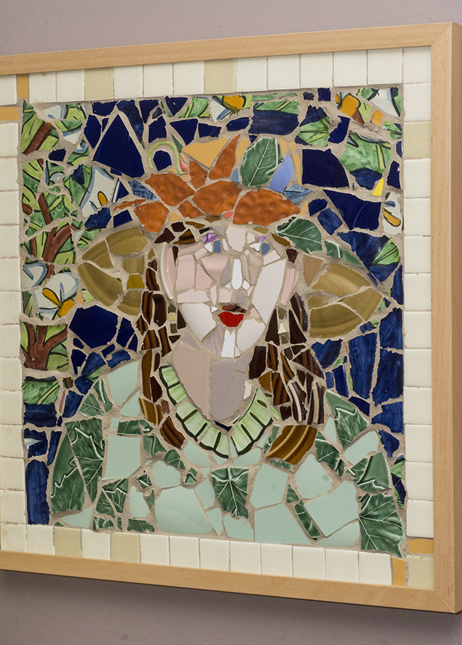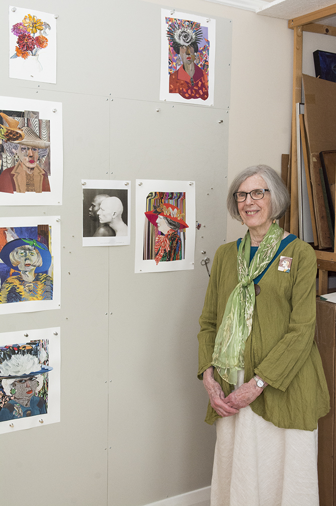 in which women from all walks of life can and will relate. Although there is a commonality in her themes, Ann uses several different mediums to share her message. Over the decades her work has transformed from paper dolls to broken glass mosaics, paintings of muses and women in hats, drawings, and her most current project, paper mosaics called “WOW: Wonderful Old Women.”