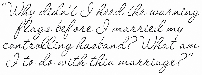 Q: “I watched my older sister go through a nightmare of a marriage. Her husband was controlling, and they are now divorced. I promised myself I would never marry someone like him, but I’ve ended up in a similar situation.