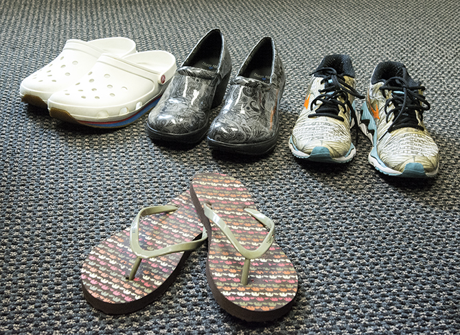 After turning on the television and getting comfortable, it’s time to multitask. “Depending on how engrossed I am in what I’m watching, I’ll also be on my iPad, on Facebook, Twitter, Instagram, answering work and personal email, and shopping for shoes.” A Zappos VIP, Jeana loves her red Tsubo pumps, a favorite pair in her shoe rotation along with sneakers and Dansko clogs.