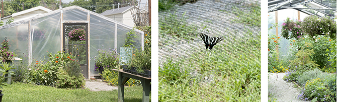 | (L-R) Outside of butterfly house; Zebra Tail butterfly; inside butterfly house |