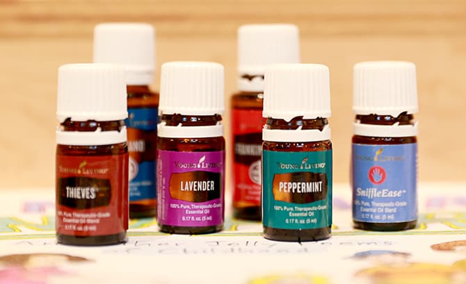 For Christmas my mom gave me a pack of five Young Living essential oils. My favorite is Thieves oil because it is supposed to ward off illness. It is a mixture of clove, lemon, cinnamon, eucalyptus, and rosemary. I rub it on the bottoms of my feet. I use these oils in so many ways — in a diffuser, on my skin at acupressure points, in the bath, as aromatherapy. The case also contained essential oils of peppermint, frankincense, lavender, and oregano.