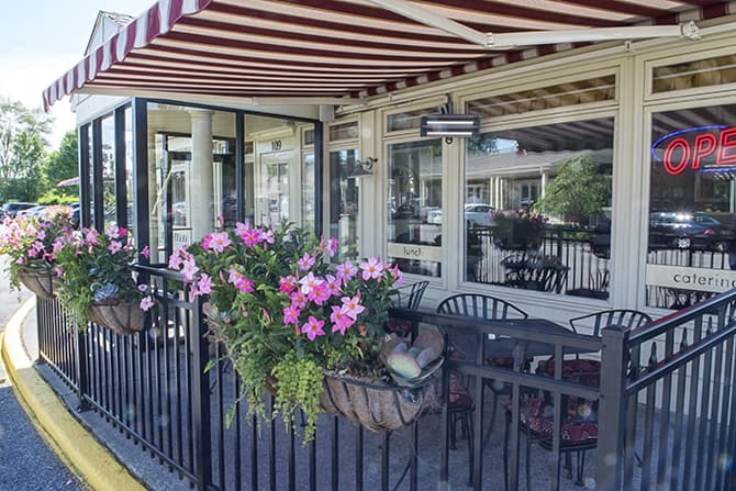 There are also two small, fenced in patio spaces on the eastern and western sides of the building with lovely flower arrangements that are situated along the top of the fence for privacy and a garden-like ambiance.