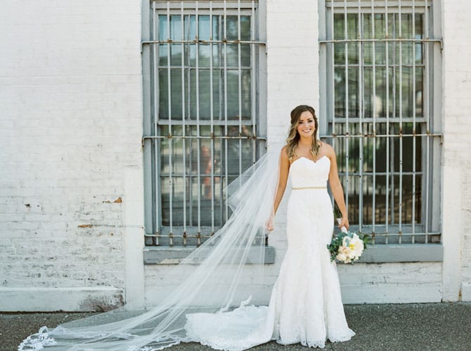 Why it worked: I knew I wanted a lace dress, but didn’t have a clue what else I was looking for in a dress. I tried on a lot of dresses, all different styles and materials, and just knew that this was my dress. I felt that the form-fitting strapless dress worked best for my body type and I just loved it. They say you will just know when the dress is the one, and it’s so true — you just know!