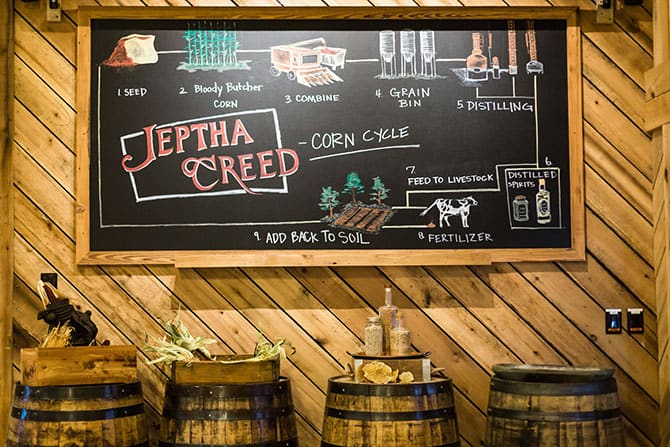 All of the spirits at Jeptha Creed are made from the bloody butcher corn, and each of the additives are Kentucky Proud. The corn itself is open-pollinated, meaning the kernels can be used to reseed the crops, making for a more sustainable farm. While the distillery is still waiting for the maturation of their bourbon, their vodkas and moonshines (which come in flavors such as original, honey, blueberry, lemonade, and apple) are made with the fruits and grains grown on the farm, as well as locally sourced honey. Thus, Joyce married her skill sets to create a business that takes a product from ground to glass. “We are trying to grow native plants and produce spirits out of what Kentucky can naturally grow,” Joyce says. She is even experimenting with the ancient paw-paw fruit.