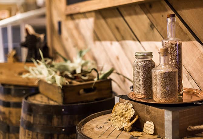 All of the spirits at Jeptha Creed are made from the bloody butcher corn, and each of the additives are Kentucky Proud. The corn itself is open-pollinated, meaning the kernels can be used to reseed the crops, making for a more sustainable farm. While the distillery is still waiting for the maturation of their bourbon, their vodkas and moonshines (which come in flavors such as original, honey, blueberry, lemonade, and apple) are made with the fruits and grains grown on the farm, as well as locally sourced honey. Thus, Joyce married her skill sets to create a business that takes a product from ground to glass. “We are trying to grow native plants and produce spirits out of what Kentucky can naturally grow,” Joyce says. She is even experimenting with the ancient paw-paw fruit.