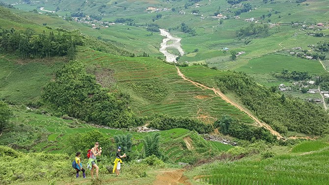 | The family took a 7-hour hike through the Vietnam Sapa Valley. |
