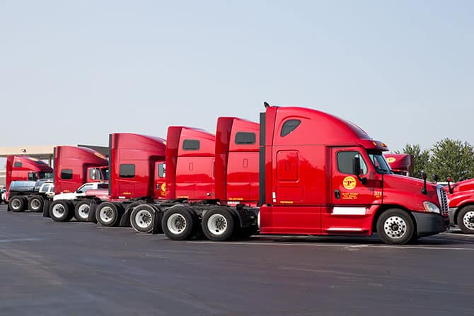 The company is now celebrating its 30th year. It started with three trucks. It now has 200 bright red trucks with the company’s yellow insignia and at least 300 employees. As a contract carrier with 48-state and Canadian authority, its customer base is very diverse, Cindy says. Its fleet of trucks haul everything from appliances to spirits to cabinetry to food products.