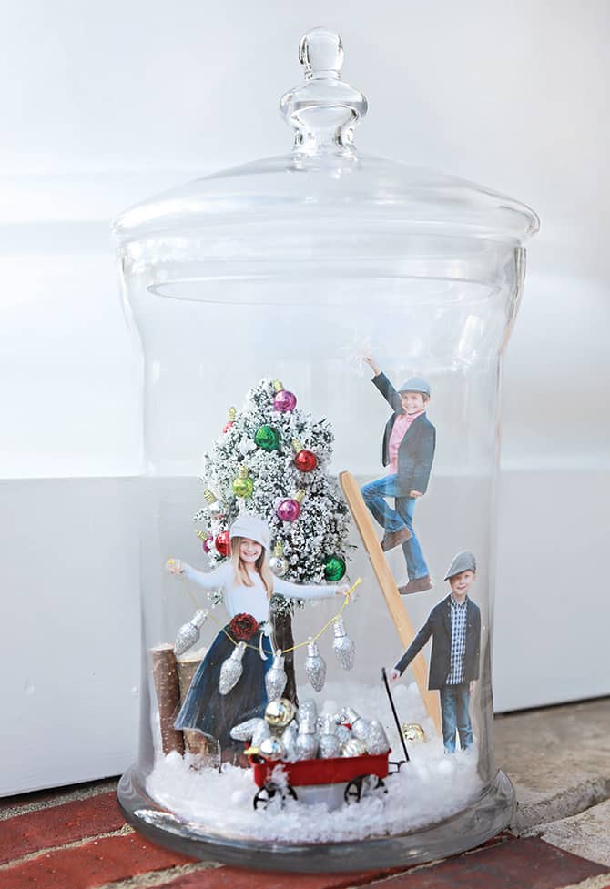 The following winter, as I pulled out boxes of decorations, I unpacked my jars and found that I loved them even more. The kids had grown and changed since then, but just as I had hoped, a moment of their childhood sat unchanged beneath the glass. I decided then and there to make it a yearly tradition and to share the idea with my closest mom friends.