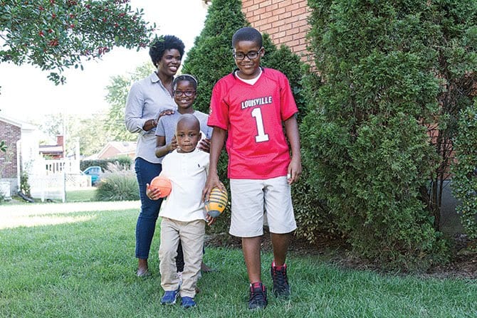| Renee Murphy and kids (youngest to oldest: Kellan, Katherine, and Keefe) at home. Photo by Patti Hartog |