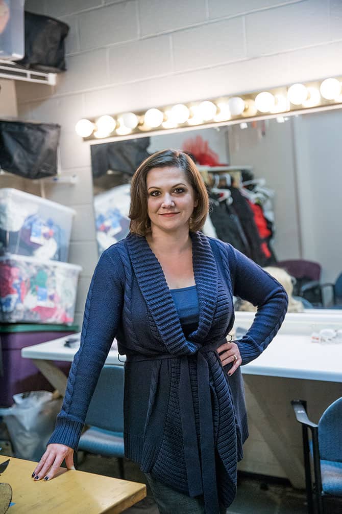 | Anne Ensign-Urteaga appreciates working behind the scenes in preparation for each performance. Here, she stands in one of the CenterStage dressing rooms. Photos by Patti Hartog |
