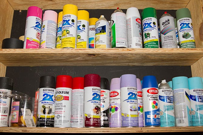 Using spray paint is a little-known backstage secret. We have an 8-foot shelf backstage filled with cans of different colored spray paint. We use it to spray paint shoes, jackets, signage, masks…whatever needs to be changed or covered. My husband always knows what I have been up to at work when I come home covered with spatters of paint.