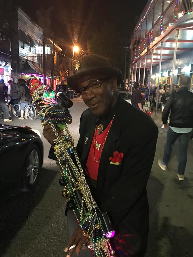 These days, Debbie’s performances primarily happen in the classroom, where she incorporates guitar and song into her third-grade curriculum. Debbie, a public school teacher of 29 years, fantasizes about moving to The Big Easy after retirement and subsidizing her recently controversial teaching pension with busking money. As a brand new teacher 28 years ago, Debbie packed up her guitar and drove her beat-up car, covered in Grateful Dead stickers, to New Orleans for her first spring break as a new teacher. She spent the week earning extra cash performing on the street in high-tops and tie-dyed shirts. For her most recent spring break Debbie returned to her favorite city, this time with her 18-year-old daughter in tow.“I’ve taken my kids to the beach, and it is so relaxing to read your book in the sand, but New Orleans brings you alive. If I’m someplace else, I just don’t have as much fun.”