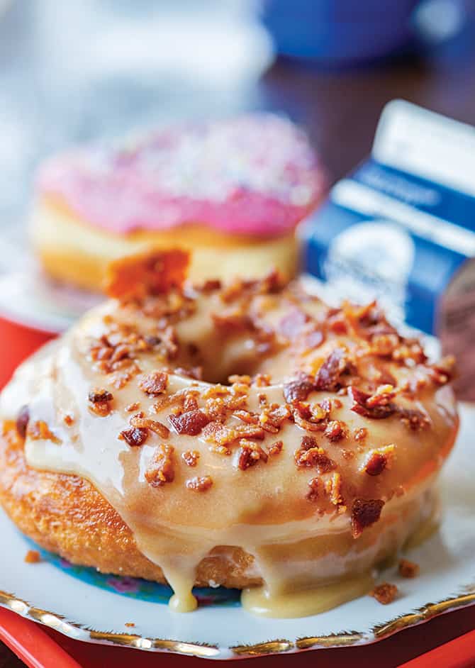 You won’t look at doughnuts quite the same after you bite into this crunchy and sweet creation. Leslie Wilson and Annie Harlow have put a new spin on the classic doughnut by merging unlikely foods and ingredients together that just work. This brioche style doughnut — made in-house without preservatives — is topped with applewood smoked bacon and a bourbon based glaze that will excite your palate. Side note: Consider the Buttermilk Chicken Doughnut sandwich.