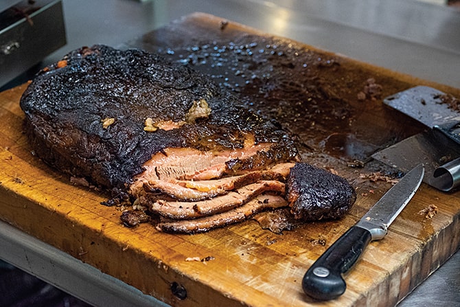 The distinctive taste of Jucy’s tender beef brisket comes from the hickory wood used to smoke the meat for 16 hours. The meat, which is hand-rubbed with onion, salt, paprika, sugar, and garlic, can be topped with tomato-based barbecue sauce. You can choose from multiple side items including: potato salad, cornbread, coleslaw, macaroni and cheese, pinto beans, and green beans. After you’ve filled up on a hearty meal, save room for Donna’s Cherry Delight. Named after its creator Donna Hiltzman, co-owner of Jucy’s, this cherry cobbler will delight your taste buds.