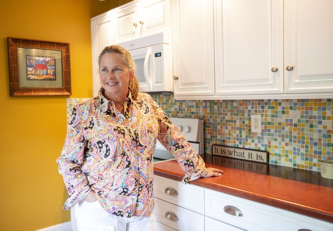 In addition to being a business owner, Vickie has a love for “things that once belonged to someone else.” She loves a good antique store find and spends weekends searching for treasures with her sisters. Vickie’s decorating style could be described as eclectic, fun, and unexpected. Her home sports a miniature chair collection she displays on her game room mantel, various pieces of art she purchased at the St. James Art Fair here in Louisville, and even a life-size Yoda she won at an auction at Mike Linnig’s seafood restaurant. “I started going to the St. James Art Fair in 1986 and haven’t missed a year since,” Vickie says. “That was my introduction to art that you wouldn’t see otherwise. That then sent me in a direction of enjoying antique malls…like Crazy Daisy and Distillery Commons, and now there are so many places that don’t just have antiques, they may have a 1966 vintage floor model hair dryer with the chair attached next to someone’s Hoosier cabinet.” Vickie’s home was built in 1927 and was purchased as her and Jack’s second home in 1987. “The original owners lived here from 1927 to 1957, and then Jack’s uncle Leonard lived here from 1957 to 1987, when he sold it to us,” Vickie says. “So I said I had to be here from 1987 to 2017 so I wouldn’t bring down the great old house mojo.” The seven things Vickie can’t live without are a perfect reflection of her personality, passions, and daily life.