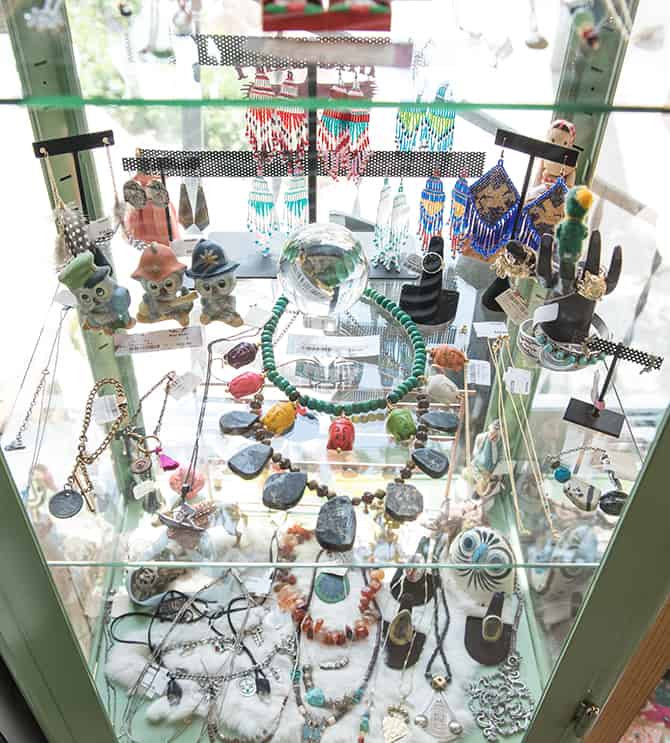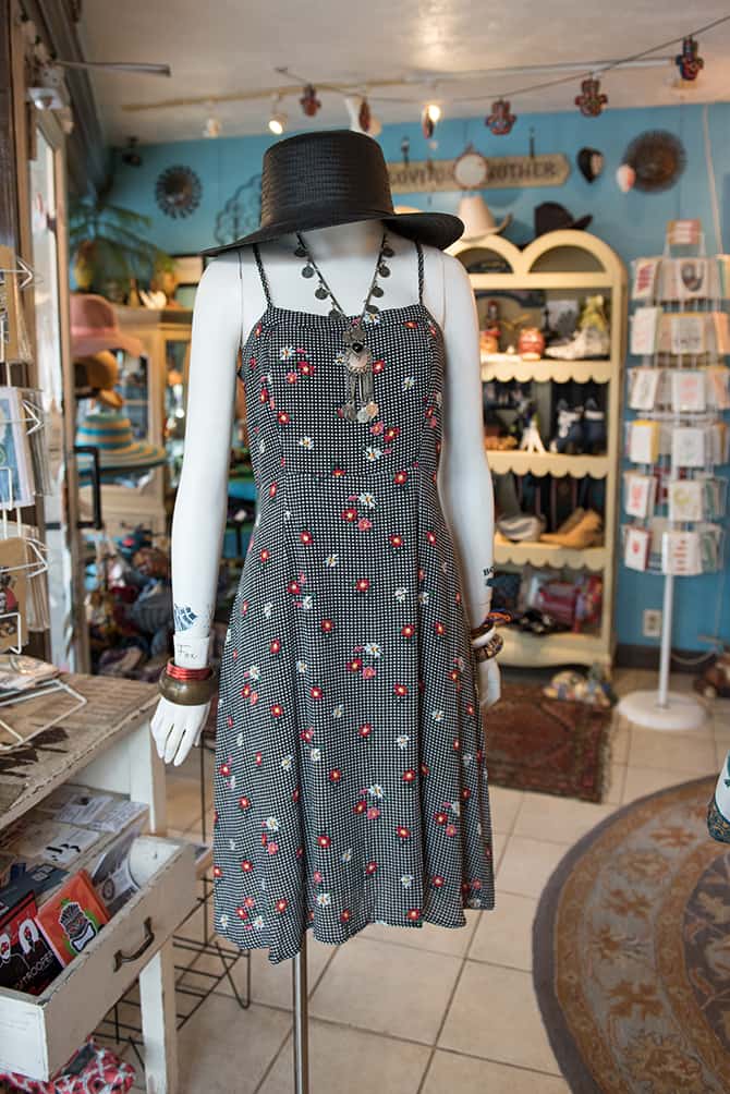 Dot Fox, which sits prominently on Bardstown Road, has eclectic clothes, vintage Pierrot-looking clowns (“They make people happy. We make sure to get the right clown to the right person. We are like the clown stork.”), books, jewelry, cowgirl/boy boots, Stetson hats, whimsical sunglasses….