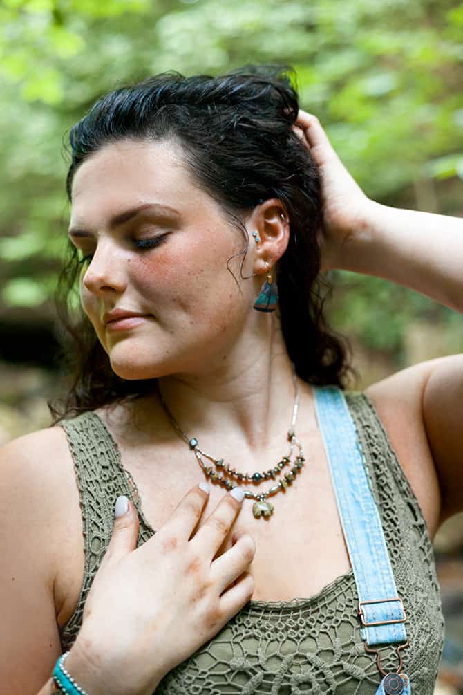 I love the outdoorsy, yet dainty feel of both the earrings and the necklace. I thought this outfit needed a touch of femininity.