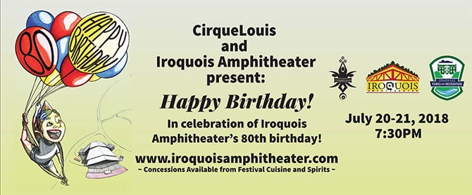Come celebrate Iroquois Amphitheater’s 80th birthday with CirqueLouis’ “Happy Birthday!” show. CirqueLouis’ performers will sing, dance, and fly in a circus celebration.