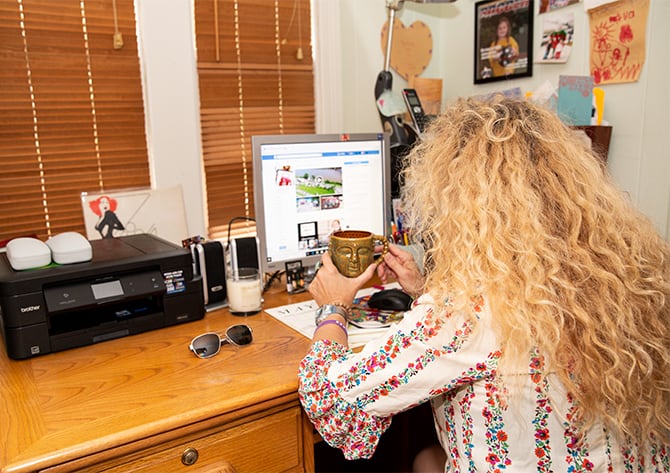 Today, the main way to communicate is by email or Facebook. Talking on the phone is not as relevant today as it was when I started out. Now it’s all about email. I have to admit I am not a tech savvy person. People laugh that I still have an aol.com email address. But, technology keeps me consistently and constantly connected. I can tune it out when I’m in spin class though. There, I am not on my phone but getting into a creative zone.