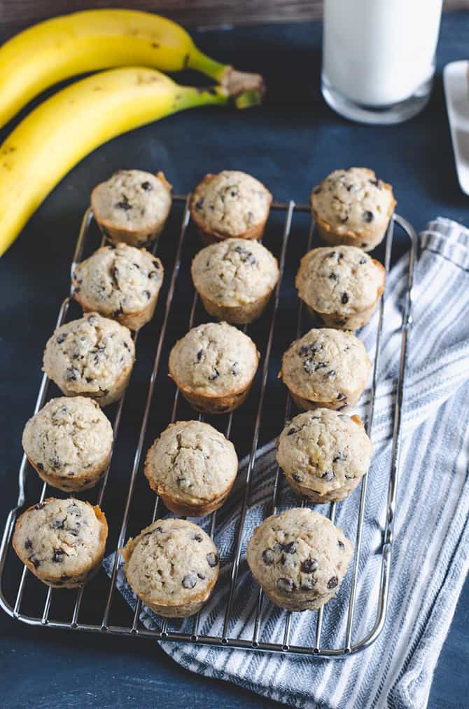 Perfect for Breakfast on the Bus: Wheat Banana Chocolate Chip Mini Muffins