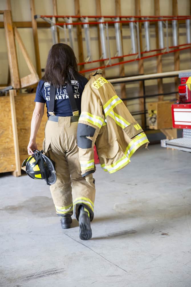 When Coby gets the call, she heads to the station and suits up.