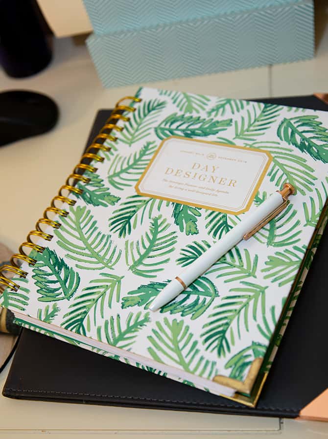 I’m obsessed with planners in general. I order one of these every year from daydesigner.com. It shows a full day hour by hour on one side of the spread, and opposite is my ToDo list, which of course is never-ending. So, I have my appointments and my ToDo list spread out in front of me. There’s a full month calendar page, which is helpful in July and the rest of summer when I start to travel so I can look at a glance and see the breakdown of where I’ll be.