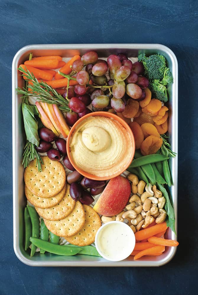 Crafting the perfect vegan charcuterie board isn’t much different from its classic counterpart. With the availability of vegan cheeses and spreads these days, you can almost follow the same guidelines, minus the meat. Hummus is a must for any vegan board, as well as plenty of crudités for dipping. Nuts, olives, fruit, and dried fruit are still great staples for both boards and will serve as great nibbles before or as your quick and simple dinner.