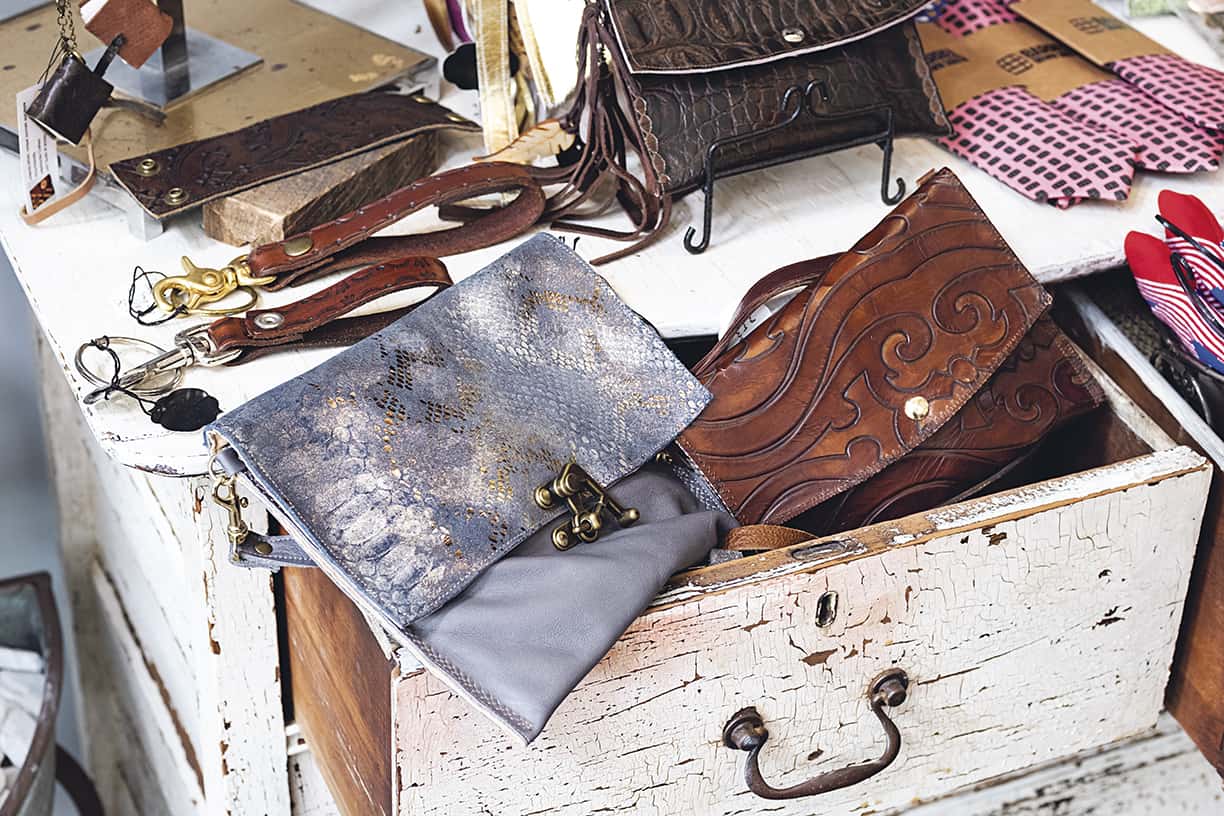 Leather purses and keychains and wrist cuff: by Inherited Leather