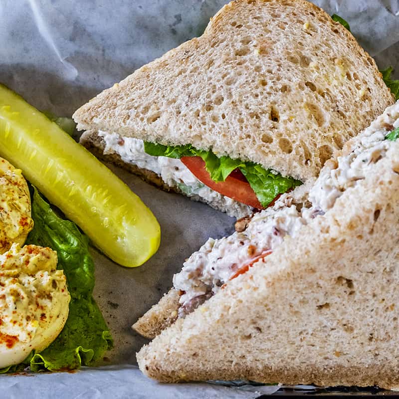 Sweetie Pie Chicken Salad Sandwich with deviled eggs