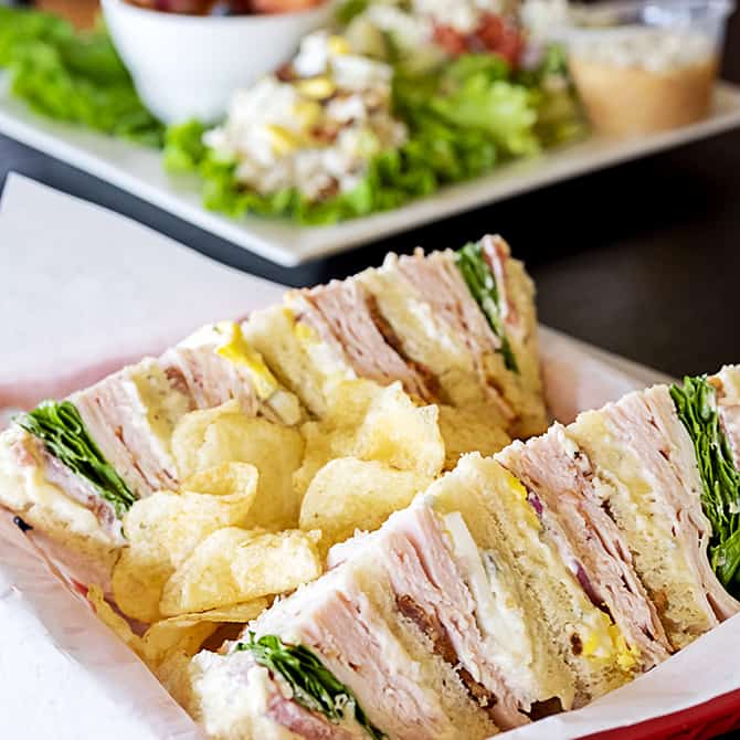 The cafe’s chicken salads are also a huge hit, with three variations to choose from — Cashew Chicken Salad, Granny Ruth’s Chicken Salad (with green olives, pecans, chopped egg, and celery), and Sweetie Pie Chicken Salad (with red grapes, candied pecans, and celery).