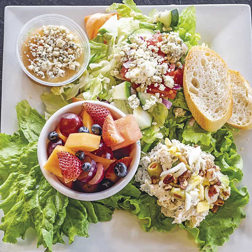 Trinity Plate Sampler: Granny Ruth’s Chicken Salad, House Salad, and side of the day (fruit)