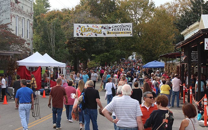 Stop by the Glendale Crossing Festival for its country charm, around 500 art, craft, and food booths, and a parade featuring floats, cars, old tractors, and more.