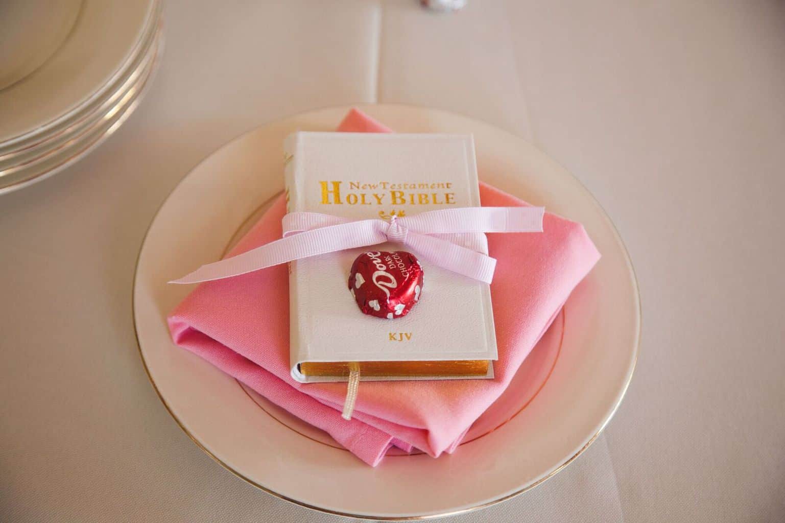 Special choices: Our favors were small Bibles and Dove chocolate. Two of our favorite things!