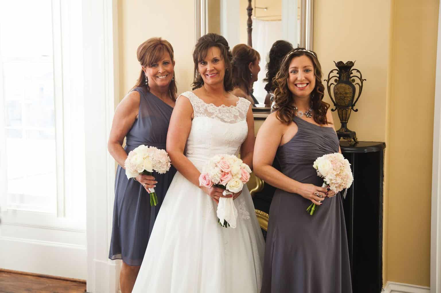 Why it worked: I wanted my girls in pink but could not get them in time. I went with gray, and told my girls to get the dress design of their choice. With the splash of pink in our bouquets, the dresses looked very pretty.