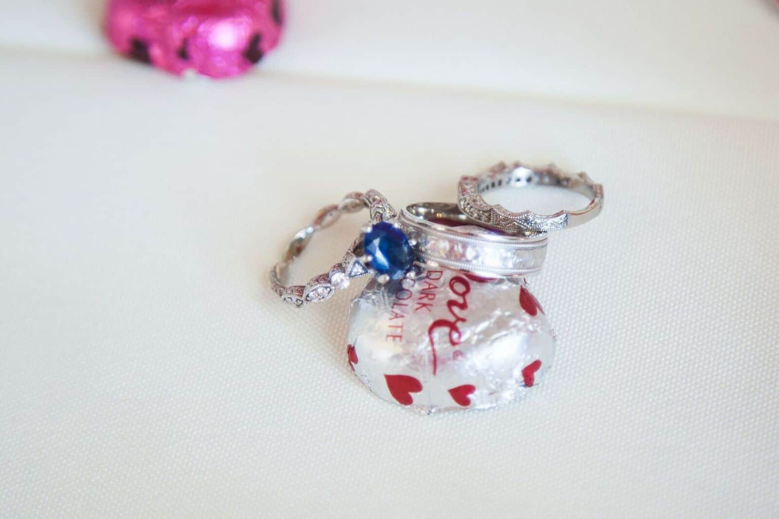 Why it worked: My husband picked out my engagement ring with no input from me. He made an excellent choice and I get a ton of compliments. Maybe because it’s unusual because the center stone is a sapphire instead of a diamond. I love the way my wedding ring looks like a crown when it is separated from the engagement ring. His ring looks really good with mine, it’s very soft white gold with a little bit of details that match my ring perfectly.