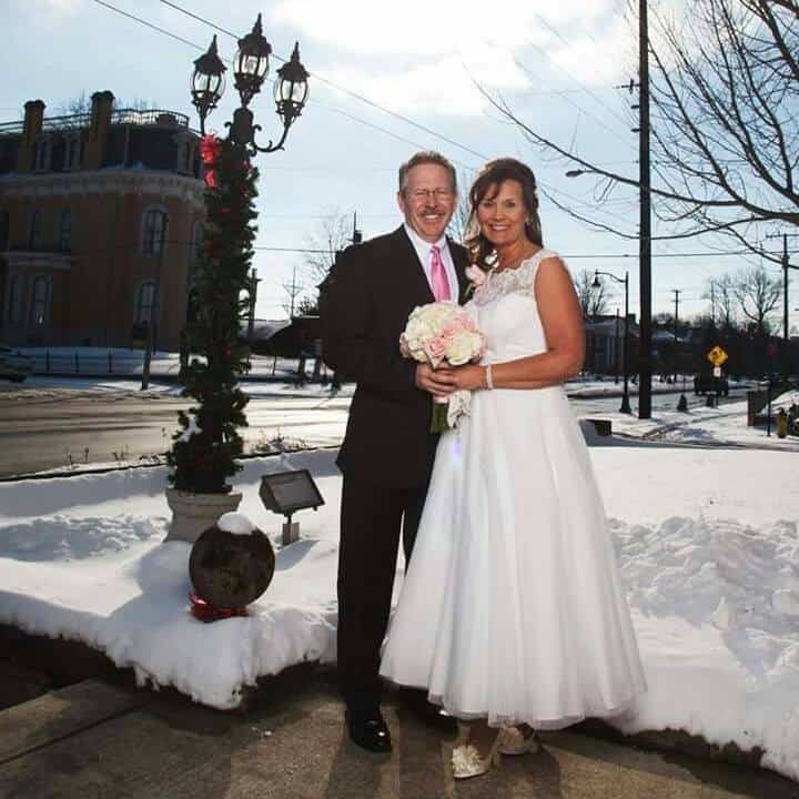 David and I met on October 9, 2015 through mutual friends. We had attended the same schools growing up but didn’t know each other even though we rode the same school bus, but I thought he was the cutest guy in the class of 1985! We were engaged November 4, 2015 and married January 23, 2016. I definitely feel God put me exactly where he wanted me to be! David proposed at the foot of the cross at our church. We actually had five ministers at our wedding, but my former boss, and good friend — an attorney — performed our ceremony! It’s really not about the food, flowers or cake, it’s truly about the marriage that comes after the ceremony and who will pour into your marriage for the next 80 years!
