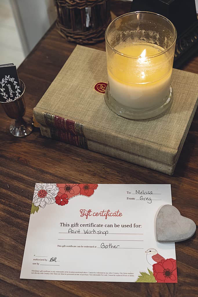 A GIFT CARD FOR FURNITURE PAINTING OR SIGN PAINTING WORKSHOPS; Gather