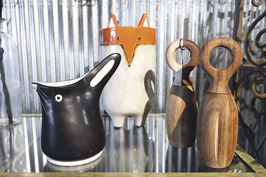 RABBIT PITCHER $16, FOX VASE $48, SALT AND PEPPER GRINDERS $58; Secret Garden