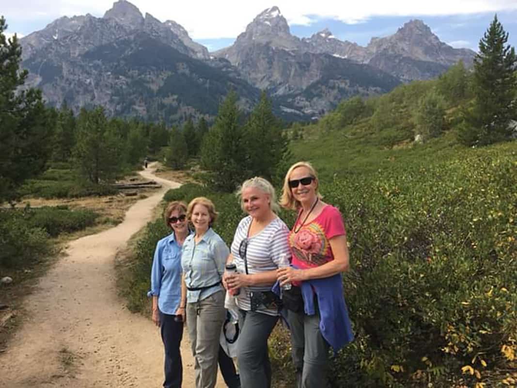 Nancy and her friends walk on a trail in Grand Tetons National Park. (L-R) Nancy, Barbara, Michele, Carol