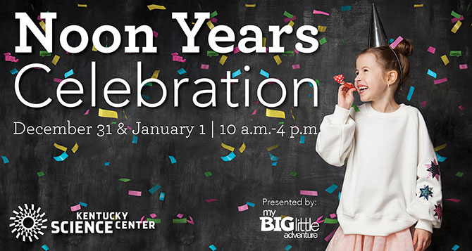 Celebrate the new year as a family at the Kentucky Science Center’s Noon Years Celebrations, featuring a Great Big Science Explosion of the Day at the drop of noon with a countdown and even bigger explosion. Other fun activities include learning how to perform at a circus, building your own puppet, making your own Hovercraft, and more.