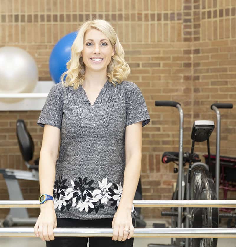 “If they are here as a bridge between surgery and home, we are more focused on activities of daily living,” Holly says. “I could be helping a patient practice going up and down stairs, getting in and out of a car, safely stepping over a curb, and building standing tolerance.