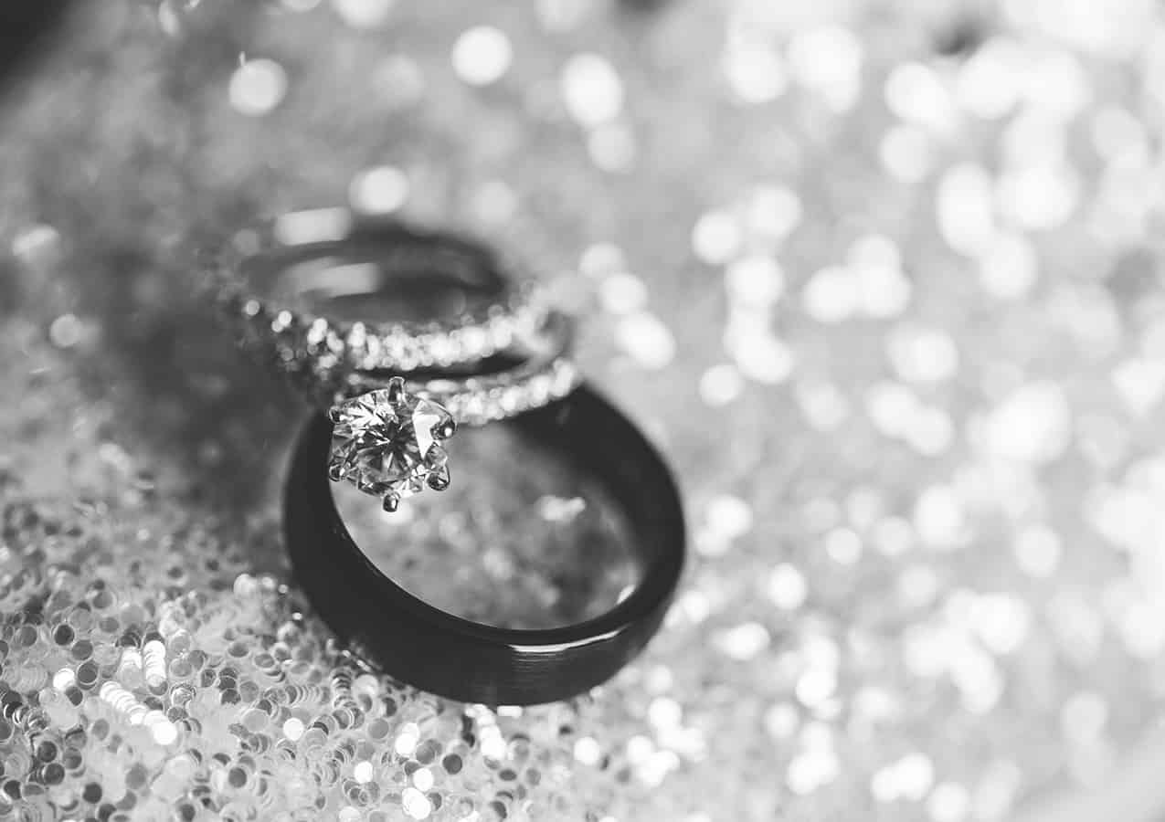 The groom chose the bride’s rings by himself and for himself wanted a ring that couldn’t get damaged since he does manual labor.