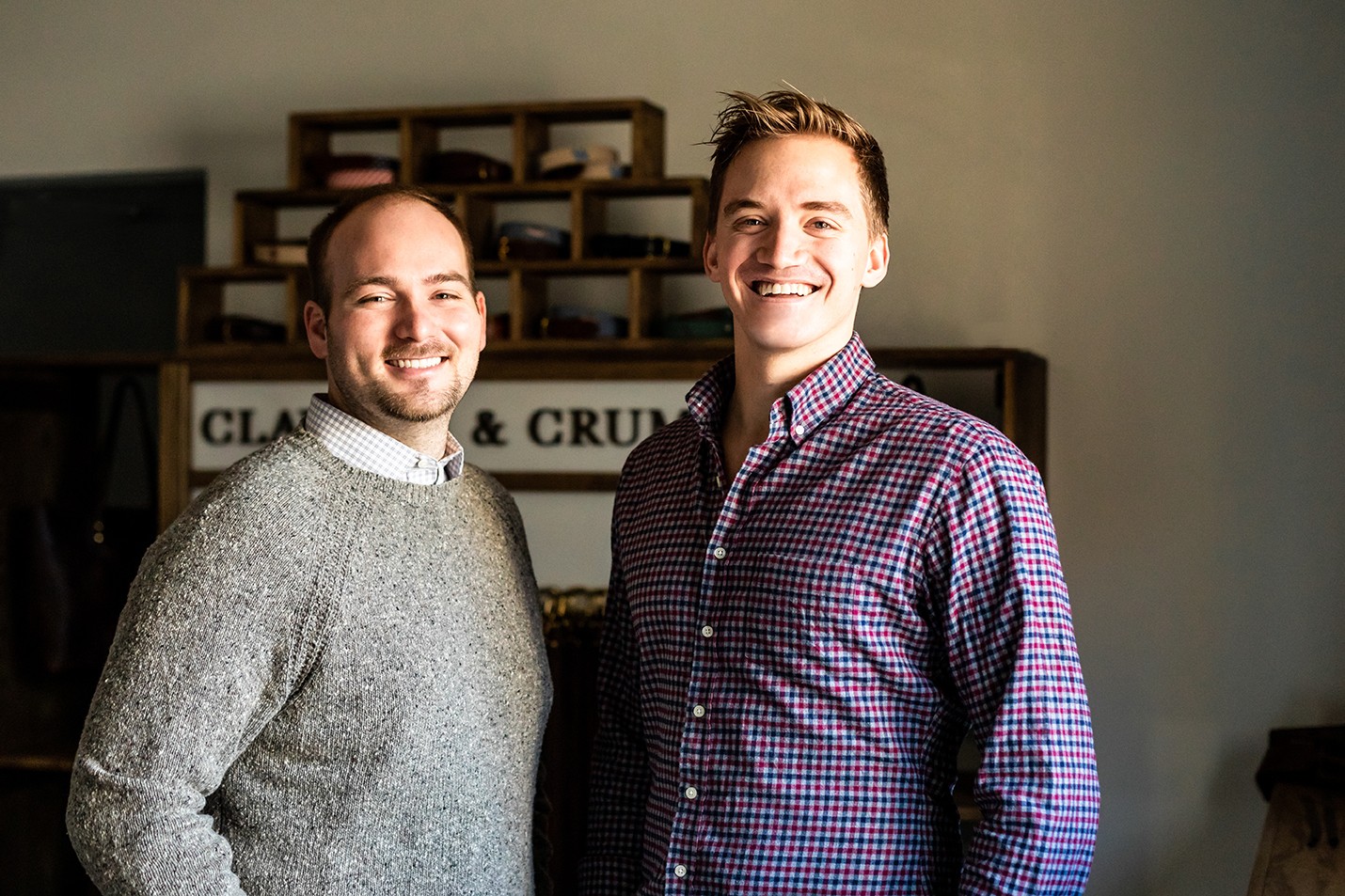 College friends noticed the belt and asked if he could make one for them. Following his initial creation, Clay began ordering leather and designing more accessories for friends. After graduating, Clay and his fraternity brother, Tyler Jury, began discussing Clay’s creativity and kicked around the idea of starting their own business selling these accessories. They drew up the paperwork, put up a website, and the result was Clayton & Crume.