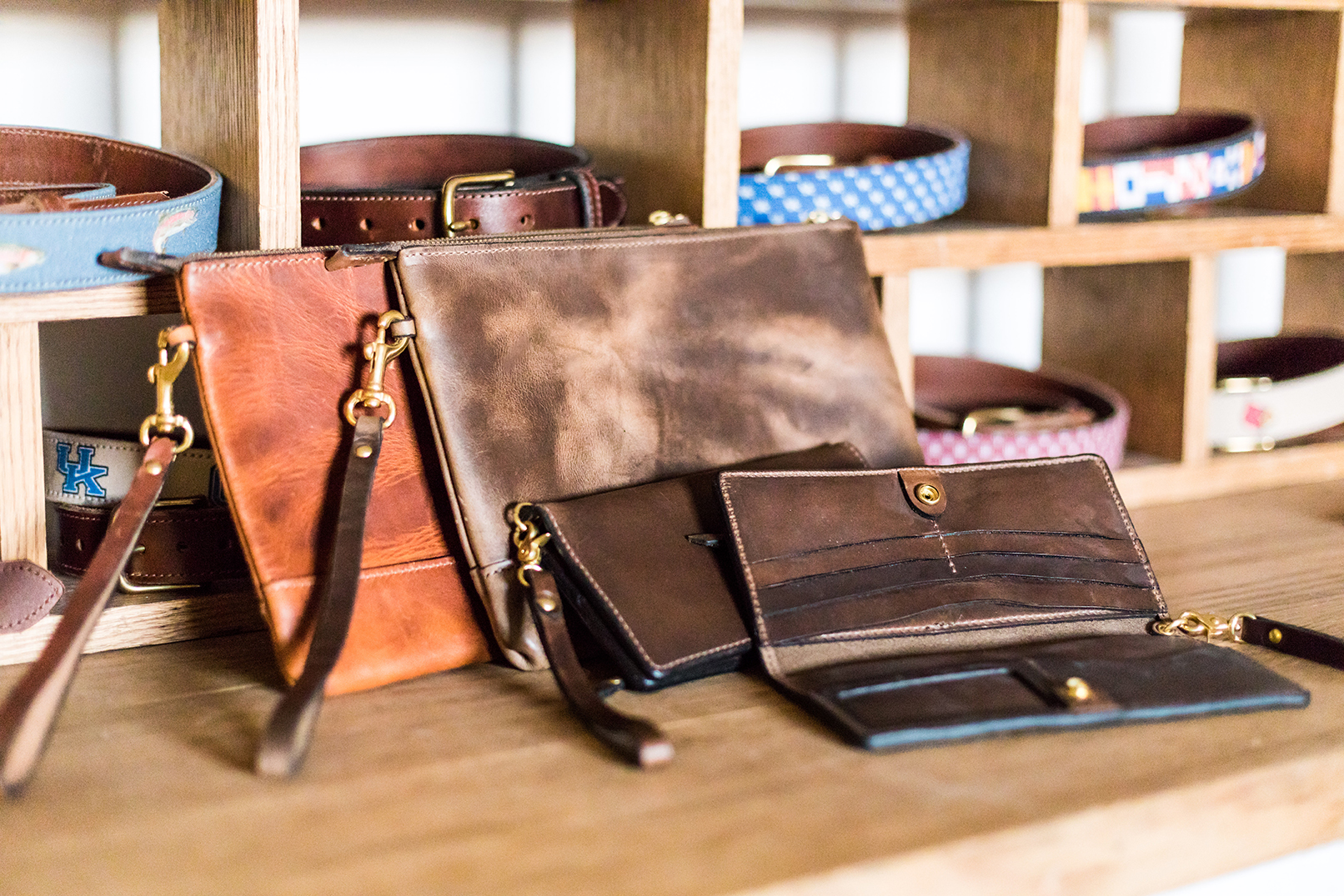 Eleven years after the creation of the dog leash belt prototype, the business has mushroomed and sells items for both men and women. The products are made of fine leather purchased from Horween Leather Company in Chicago. “We said that if we’re going to make products out of leather, then we’re going to do it right,” Clay says.