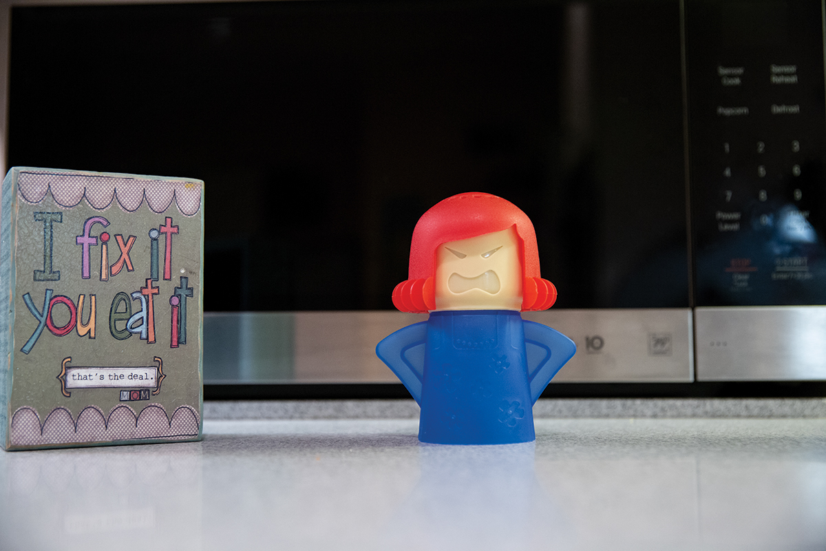 This is a microwave oven cleaner. You put a vinegar and water solution in the body, put it in the microwave, turn it on, and the solution shoots out of her head. Clean oven!