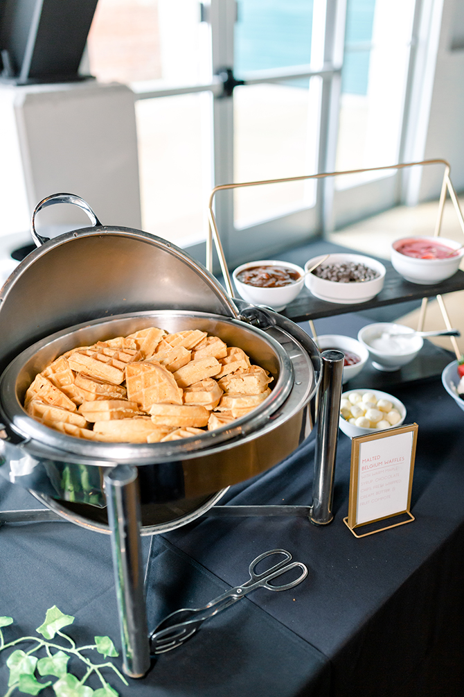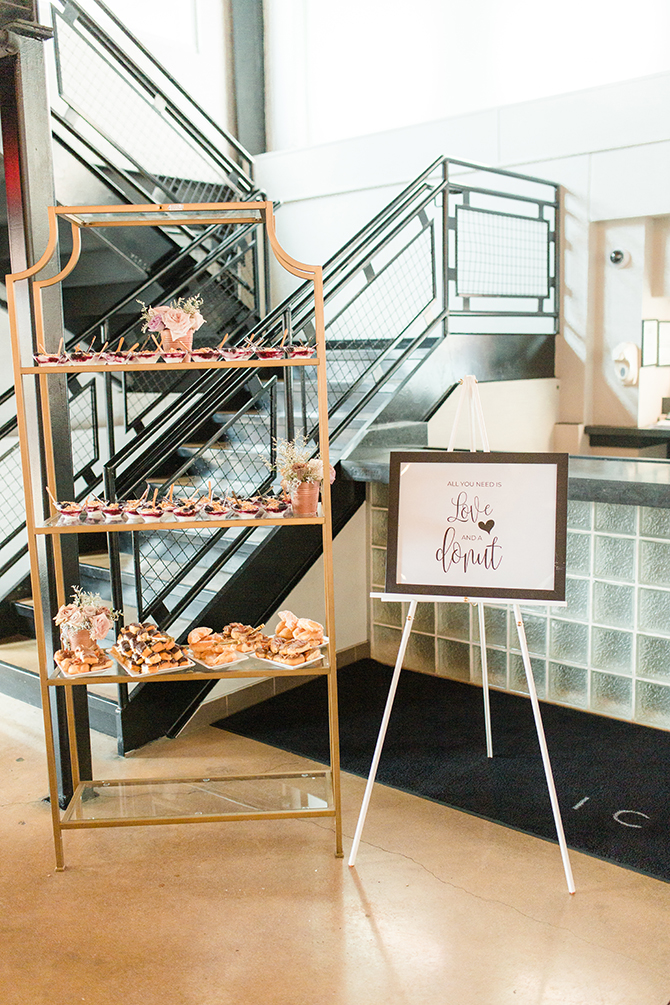 It was the groom’s birthday was on the day of the reception so a special birthday cake for the groom – white chocolate, peanut butter flavored – was made by a friend of the bride. The ceremony food was hors d’oeuvre style, which was more feasible for 20 people, and had cake pops and brownies for dessert. The reception was brunch-style, which included Mimosas and Bloody Mary’s, along with the bride’s favorite brunch item — donuts.