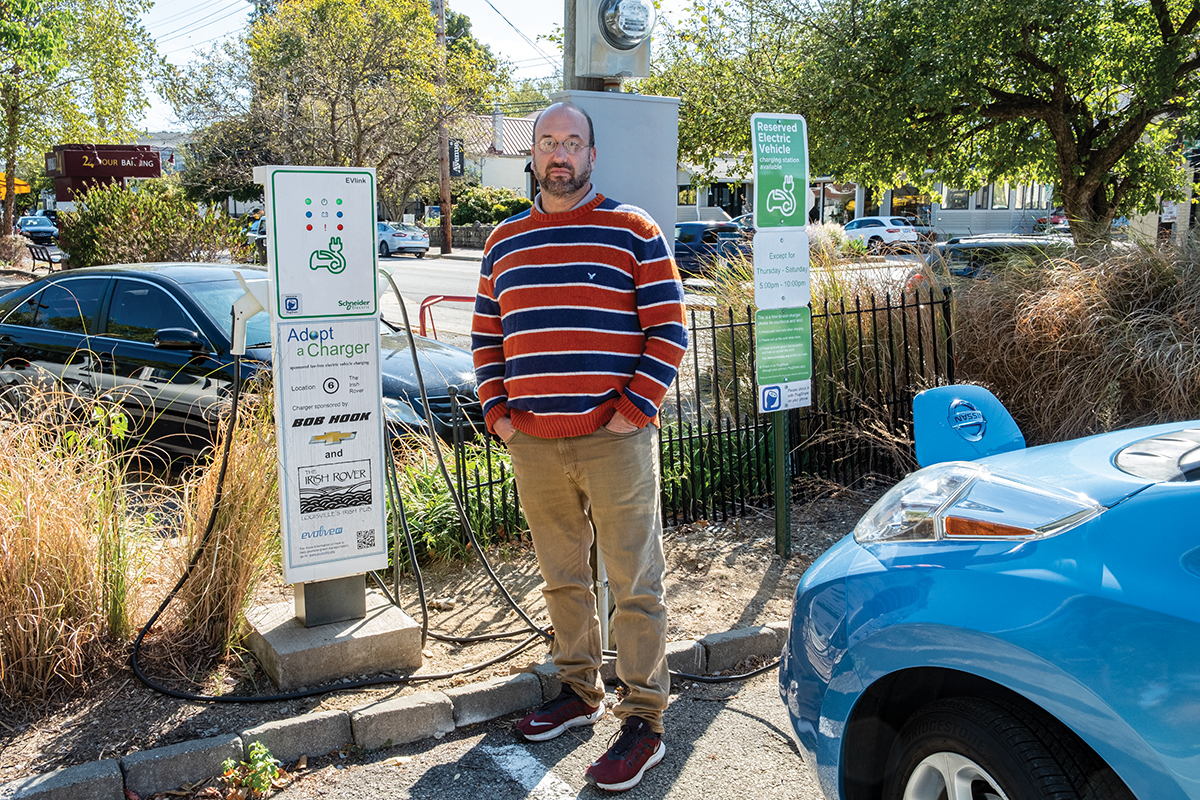 Stuart Unger, president of Evolve KY, is helping Louisville’s air by encouraging others to make the switch to electric cars. Five years ago, Stuart and his friend were having a conversation about the lack of electric charging stations in the city, when he had an epiphany: If people were going to make the switch to electric, they would need better electric infrastructure. At the time, the only charging stations were located at the electric car dealerships. Now, five years later, Stuart’s nonprofit has helped to install free charging stations in 22 locations around the region — outside coffee shops and busy metro areas, and even one inside Bernheim Forest.